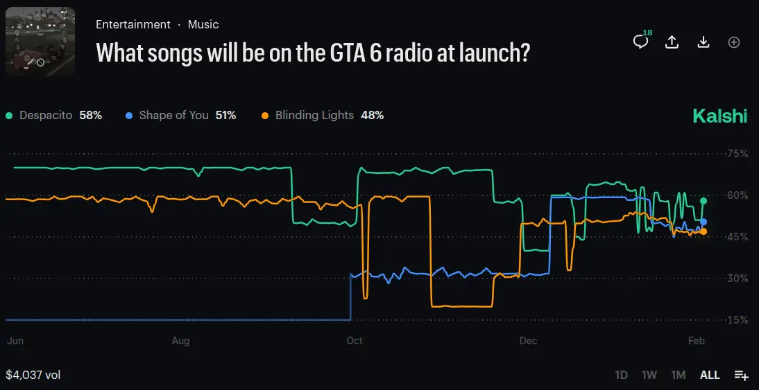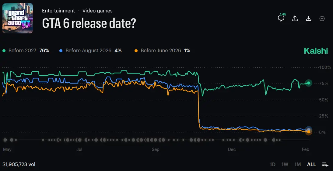 GTA VI is shaping up not only to be one of the biggest video games of all time, but one of the most important cultural events of 2026, as seen by it being included in some of the biggest cultural prediction markets on Kalshi and beyond.